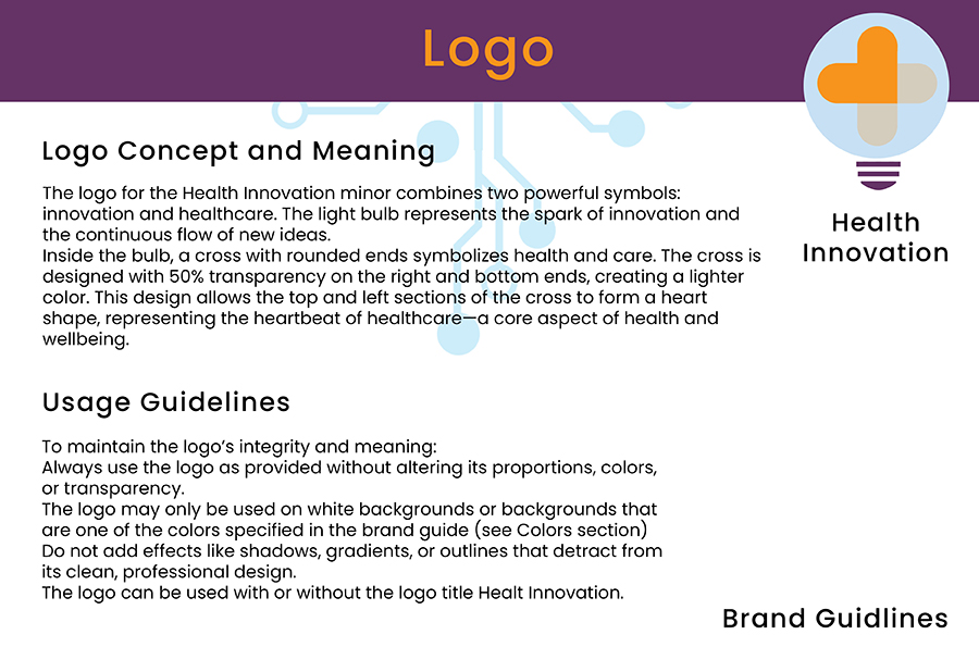 This project allowed me to combine research, creativity, and strategic thinking to develop a cohesive brand identity for the Health Innovation minor. I learned the value of iteration, balancing creativity with practicality, and maintaining consistency across various media. While I’m proud of the final results, I see opportunities for further growth, such as expanding the content strategy with additional formats like video or email campaigns.