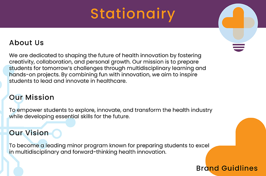 This project allowed me to combine research, creativity, and strategic thinking to develop a cohesive brand identity for the Health Innovation minor. I learned the value of iteration, balancing creativity with practicality, and maintaining consistency across various media. While I’m proud of the final results, I see opportunities for further growth, such as expanding the content strategy with additional formats like video or email campaigns.