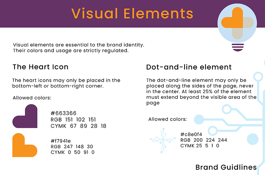 One of the most challenging aspects of this project was designing a logo that was both visually appealing and aligned with the branding guidelines of Fontys and the specific identity of the Health Innovation minor. My initial concept featured several symbols: a light bulb for innovation, a cross for healthcare, and a heart symbolizing passion and life. I also included a dot-and-line motif to represent technology and progress.